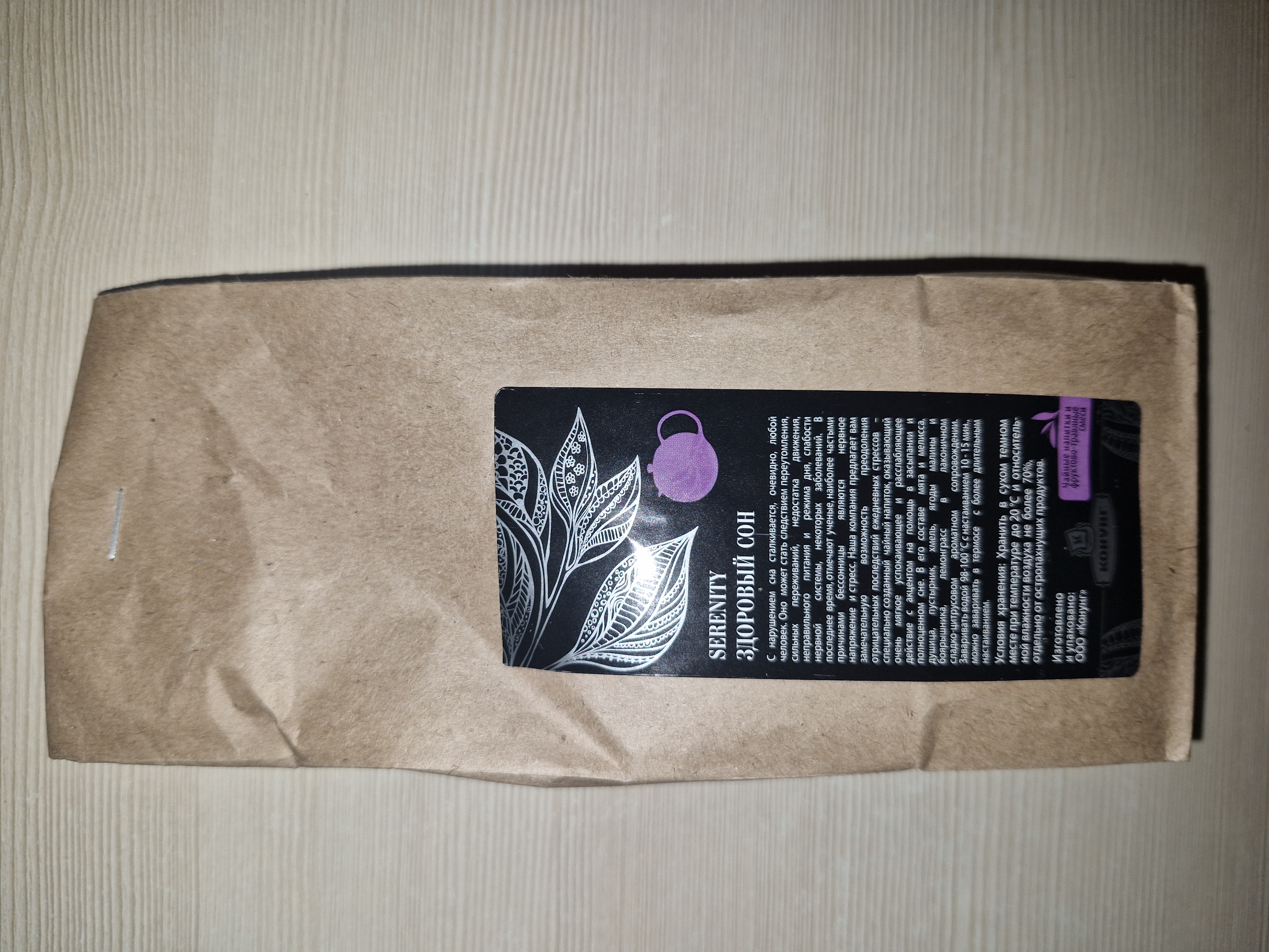 Чайный напиток, оказывающий очень мягкое успокаивающее и расслабляющее действие с акцентом на помощь в засыпаниии и полноценном сне.В его составе мята и мелисса,душица,пустырник,хмель,ягоды малины и боярышника,лемонграсс в лаконичном сладко-цитрусовом ароматном сопровождении.