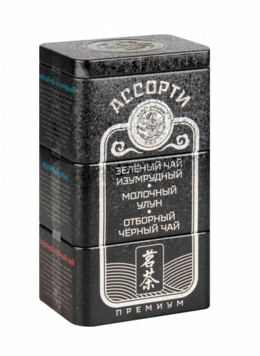 В основе набора несколько видов зеленого и молочного черного чая. Чай ассорти №1 BlackDragon – это уникальный пакетированный чай, который является частью знаменитой коллекции с общим названием «Черный дракон». Зеленый и черный чай здесь удачно сочетается с различными добавками, которые обогащают не только вкус напитка, но и его аромат. В набор входят зеленый чай с шиповником, зеленый чай с боярышником, зеленый чай с имбирем, молочный зеленый чай и молочный черный чай.
