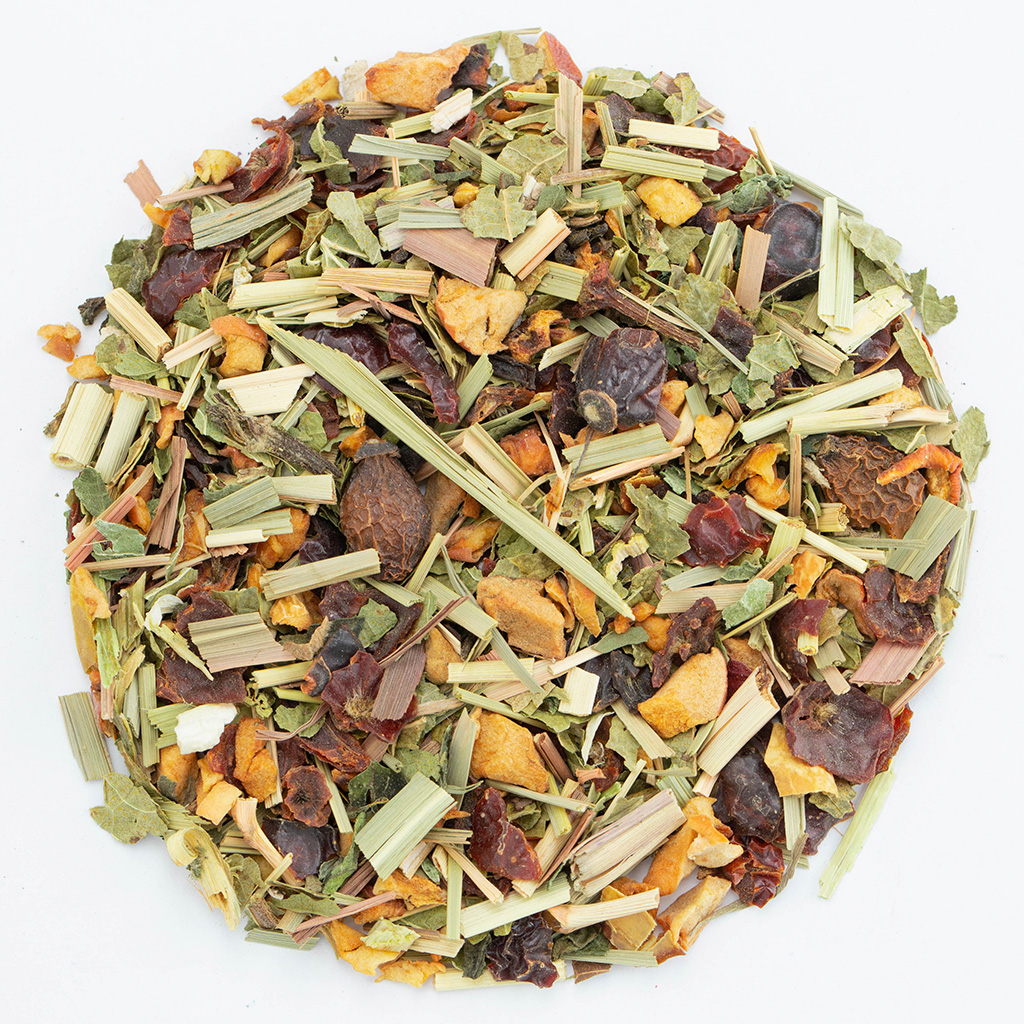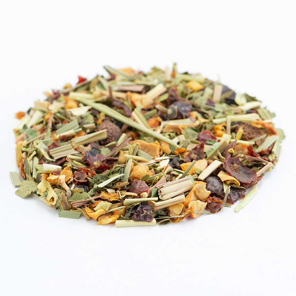 Фиточай Бодрость - высокоэффективный тонизирующий сбор из растений, растущих в экологически чистых условиях Крымских гор. Благодаря богатому составу крымских трав напиток имеет выраженные общеукрепляющие свойства, обеспечит быстрое восстановление сил, избавит от усталости. Состав, насыщенный полезными компонентами, благотворно воздействует на организм в целом и укрепляет иммунитет. Рекомендовано употреблять в тяжелые физически и морально дни, так как фито чай придает силы. Предупреждает заболевания сердечно-сосудистой системы. Поможет избавиться от хронической усталости. В состав сбора входят - эхинацея, шиповник измельченный, кусочки яблок, лемонграс, листья смородины, мята, крапива. Настой имеет нежный травяной аромат и освежающее послевкусие.