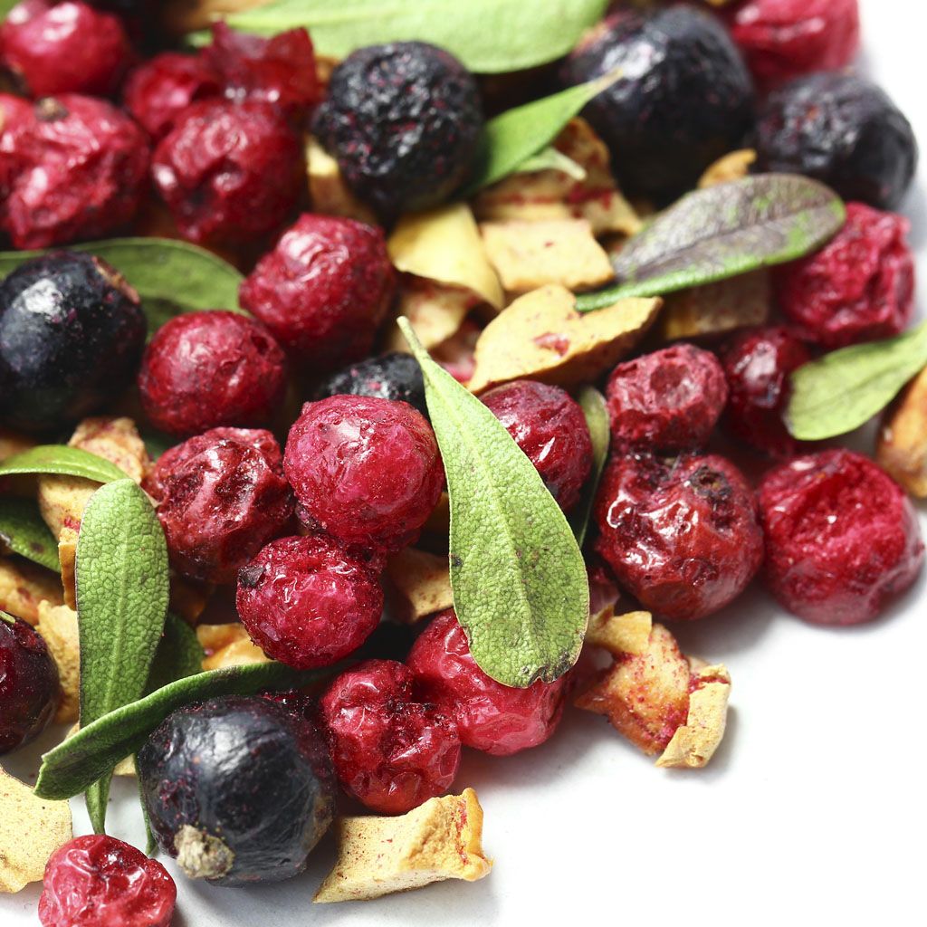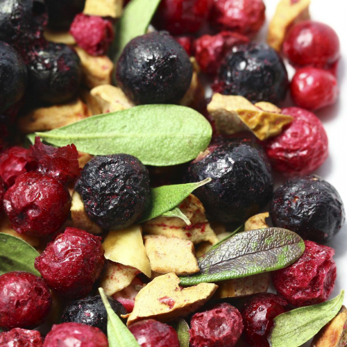 Сочная колоритная смесь составлена из цельных ягод, кусочков яблока и каплевидных листочков. Яркий, по-летнему свежий вкус и несомненная польза напитка заряжает энергией и позитивом! В алом настое проявляется ягодная кислинка, яблочная нотка и тонкая сладость. Ягоды, используемые в составе чаев BestTea, проходят процесс сублимированной сушки, при котором из них почти полностью удаляется вода за счет вакуумной взгонки и шоковой заморозки. При этом ягоды сохраняют все полезные свойства и питательные вещества, а также форму, цвет и аромат. Состав Кусочки яблок, ягоды черной смородины, ягоды красной смородины, ягоды брусники, листья брусники