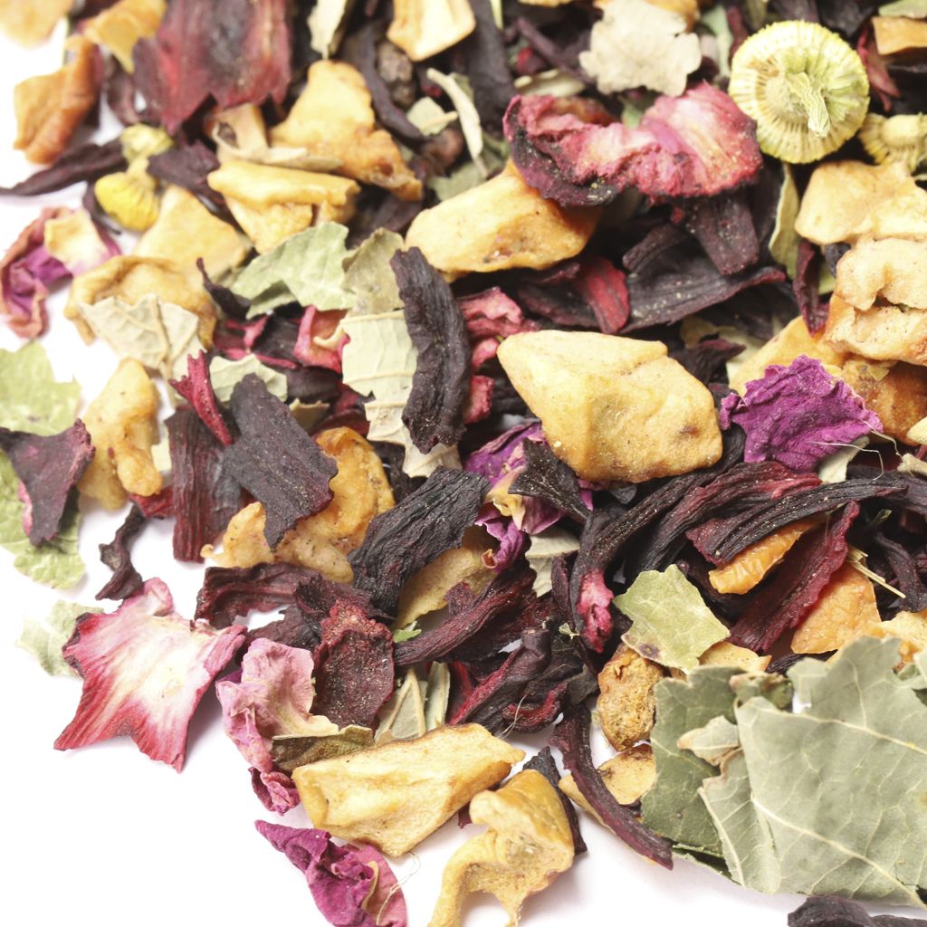 Гармоничный купаж, составленный из множества ингредиентов, сливающихся в благозвучную симфонию вкуса! Настой насыщенно рубинового цвета обладает яркой кислинкой каркаде с яблочным оттенком и нежным обволакивающим ароматом малины и сливок. Лепестки розы вносят нотку изысканного шарма. Травяные компоненты усиливают вкус и пользу напитка. Состав Каркадэ, кусочки яблок, листья крапивы, цветы ромашки, листья ежевики, листья смородины, лепестки розы красной, цвет липы, аромат малины и сливок