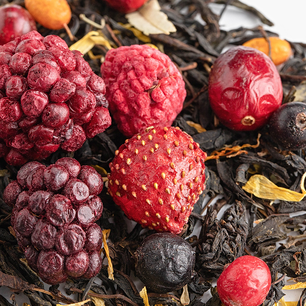 Яркое и смелое сочетание цельных ягод на основе иван-чая раскрывает новые грани привычного напитка и дарит новые впечатления от чаепития. Готовый настой обладает объемным ягодно-фруктовым вкусом, приятной кислинкой, абрикосовыми нотками, мягкой терпкостью с травянистым оттенком. Состав Иван-чай, цвет липы, ягоды облепихи, малины, клубники, ежевики, красной смородины, черной смородины, клюквы, листья ежевики, лепестки календулы.