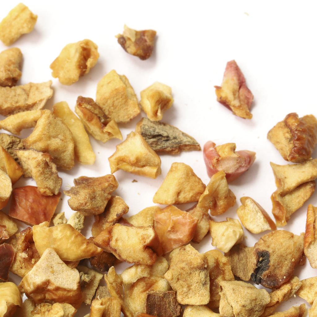 Состав Кусочки яблок, кусочки имбиря, кусочки корицы, аромат меда.