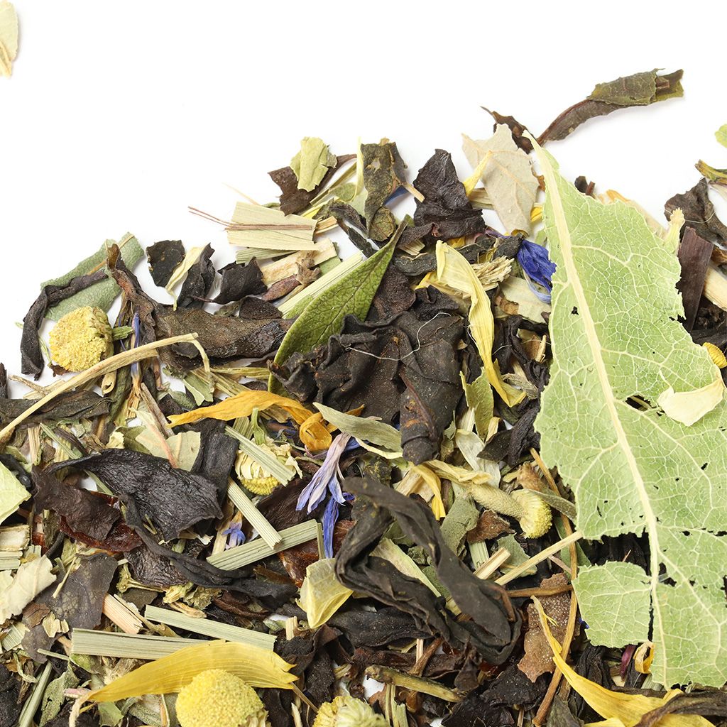 Оригинальный чайный купаж, сочетающий в себе легендарный чай Да Хун Пао, традиционный русский напиток Иван Чай и множество ароматных трав. Состав Чай китайский Да Хун Пао ( большой красный халат ), иван чай, шиповник измельченный, мята, чабрец, лемонграсс, цветы ромашки, крапива, листья ежевики, душица, липа, листья ежевики, лепестки василька, лепестки календулы, листья толокнянки.