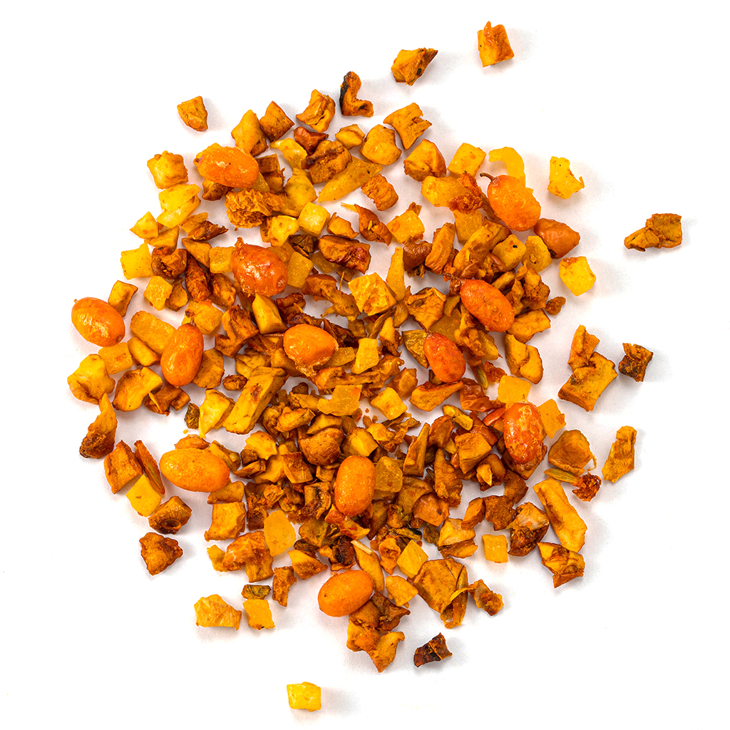 Состав Яблоко кусочки, ананас кусочки, облепиха ягоды, имбирь кусочки, ароматизатор "Облепиха"