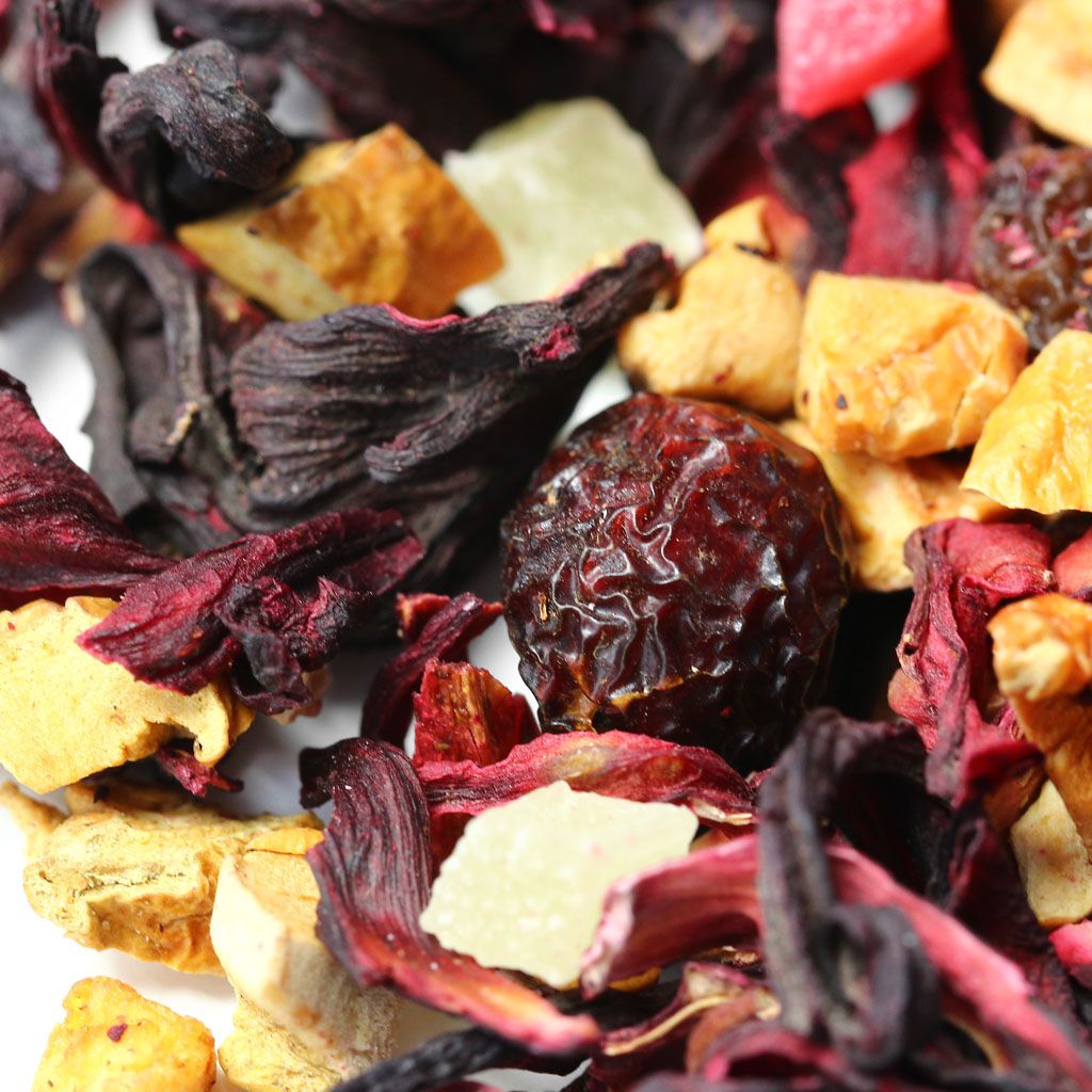 Неповторимо богатая композиция создается кусочками спелого ананаса, яблока, цельными плодами шиповника и красным изюмом. В дополнение композиции гибискус. Оригинальная смесь розовых, желтых, белых и коричневых кусочков в сухом виде обладает непревзойденным магнетизмом запаха. Яркий привкус это заслуга создателей столь необычайно фруктовой композиции, собравших все элементы напитка воедино. Гармонирующий аромат дикой вишни и корицы, сладость ананаса и изюма прекрасно сочетаются с кислинкой шиповника и гибискуса. Этот чай даст праздничное и фееричное настроение дню, душевности в компании. Его приятный глубокий розовый оттенок, как закат, ласкает и нежит взор. Вы можете купить высококачественный Фруктовый чай Веселый Фрукт Classic в интернет-магазине чайной компании BestTea оптом или в розницу, на выгодных условиях, с доставкой по России и СНГ. Количество чая: 2 чайные ложки Объем и температура воды: 450 мл., 90-98 С Время заваривания: 5 минут Состав Каркадэ, кусочки яблок, кусочки ананаса, изюм красный, плоды шиповника целые, аромат бабушкиного варенья.