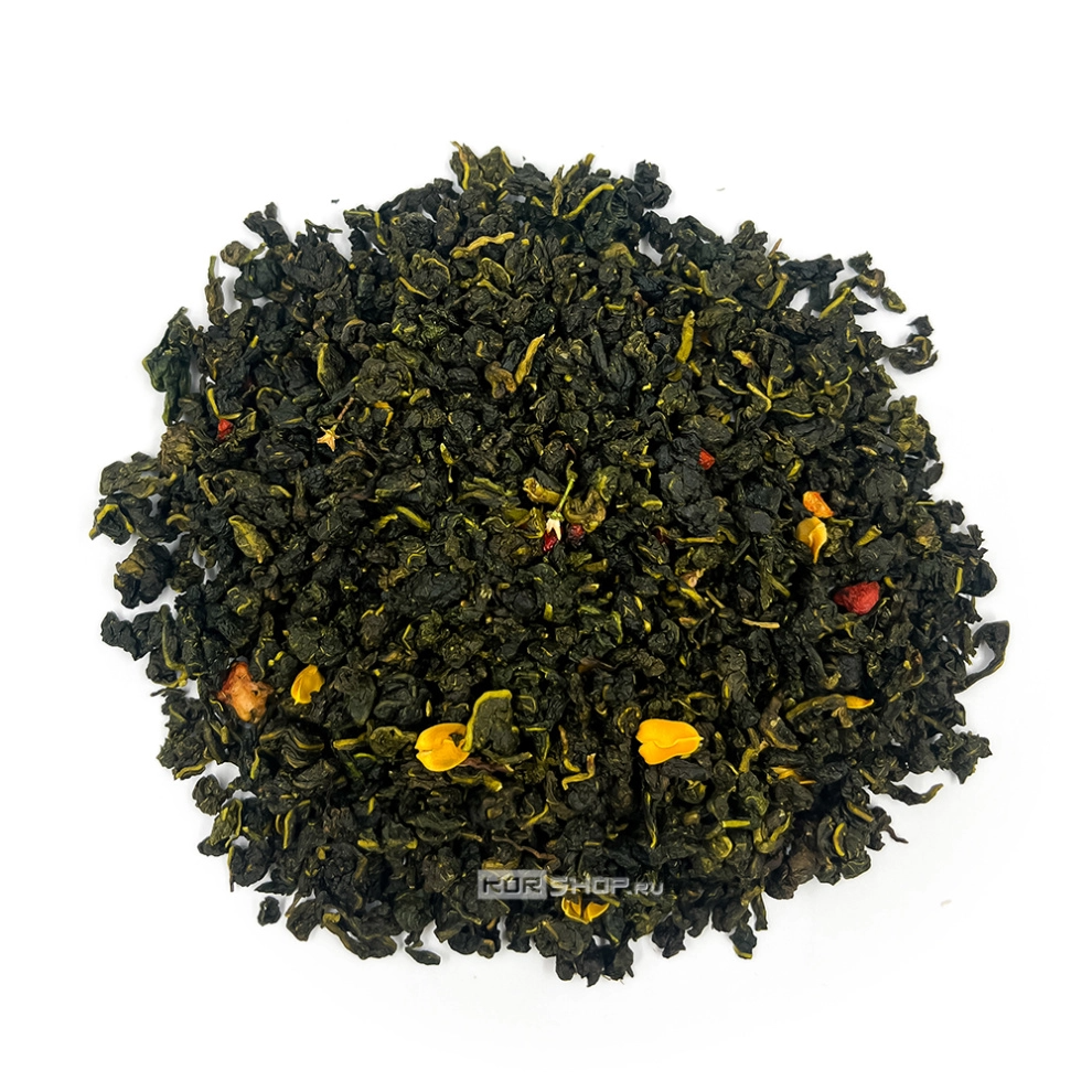 Состав: китайский бирюзовый чай, кусочки спелой клубники, цветы акации и ароматические масла.