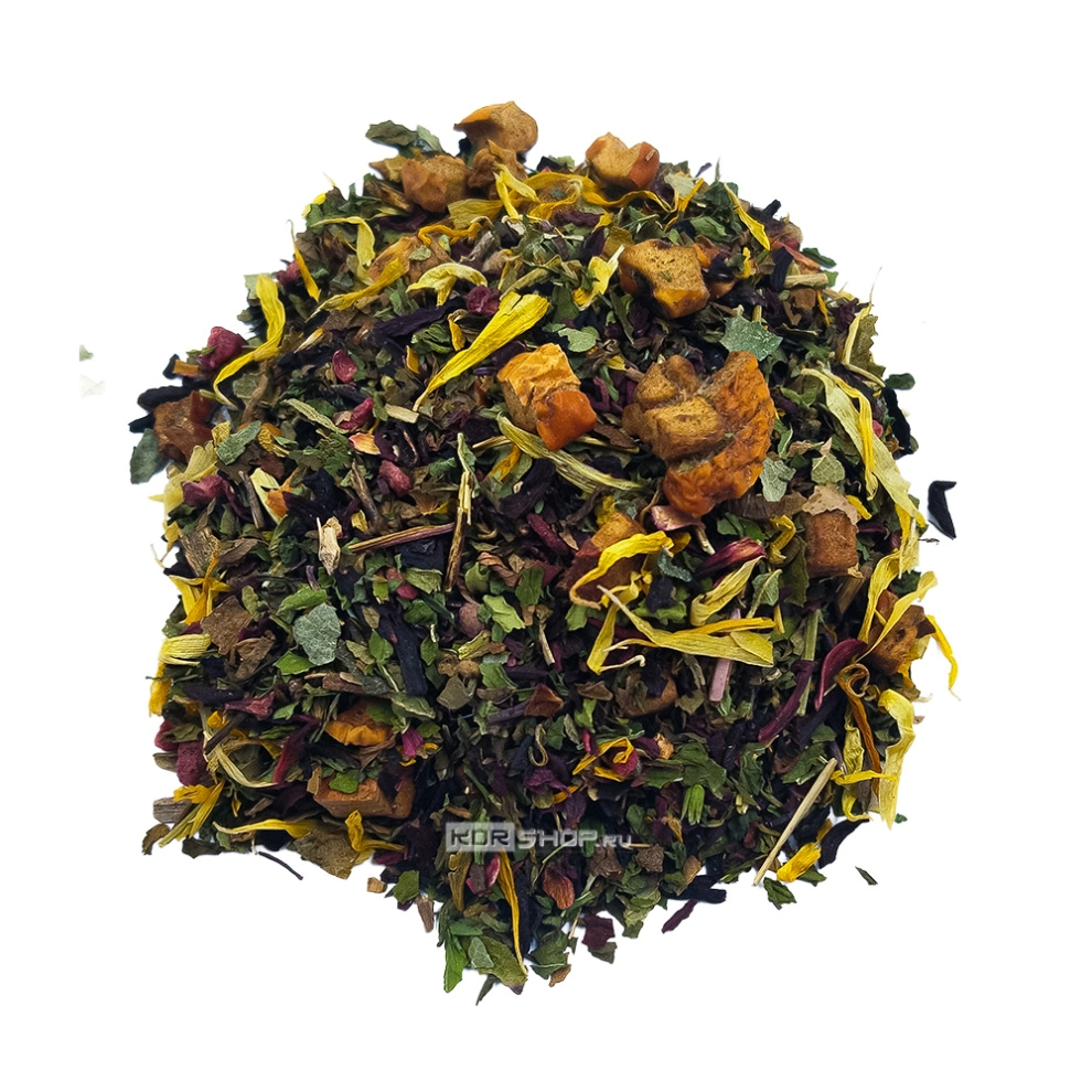 Состав: гибискус, лист клубники, календула, яблоко, мята, сублимат малины, ароматизатор.
