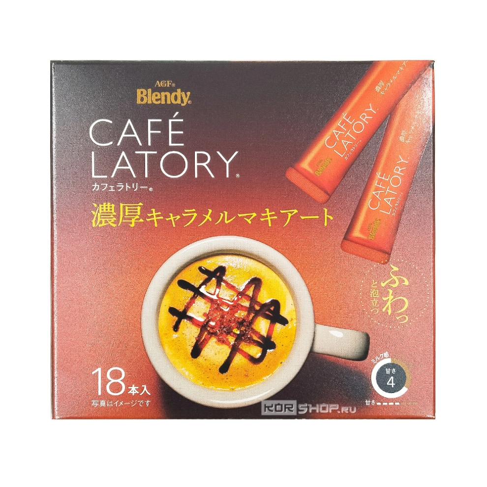 Растворимый кофе Макиато с карамелью в стиках Cafe Latory Blendy AGF, Япония, 207 г (11,5 г х 18 шт.) Акция