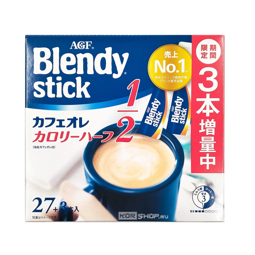 Растворимый кофе с молоком и пониженным содержанием сахара , низкокалорийный в стиках Blendy Stick AGF, Япония, 162 г Акция