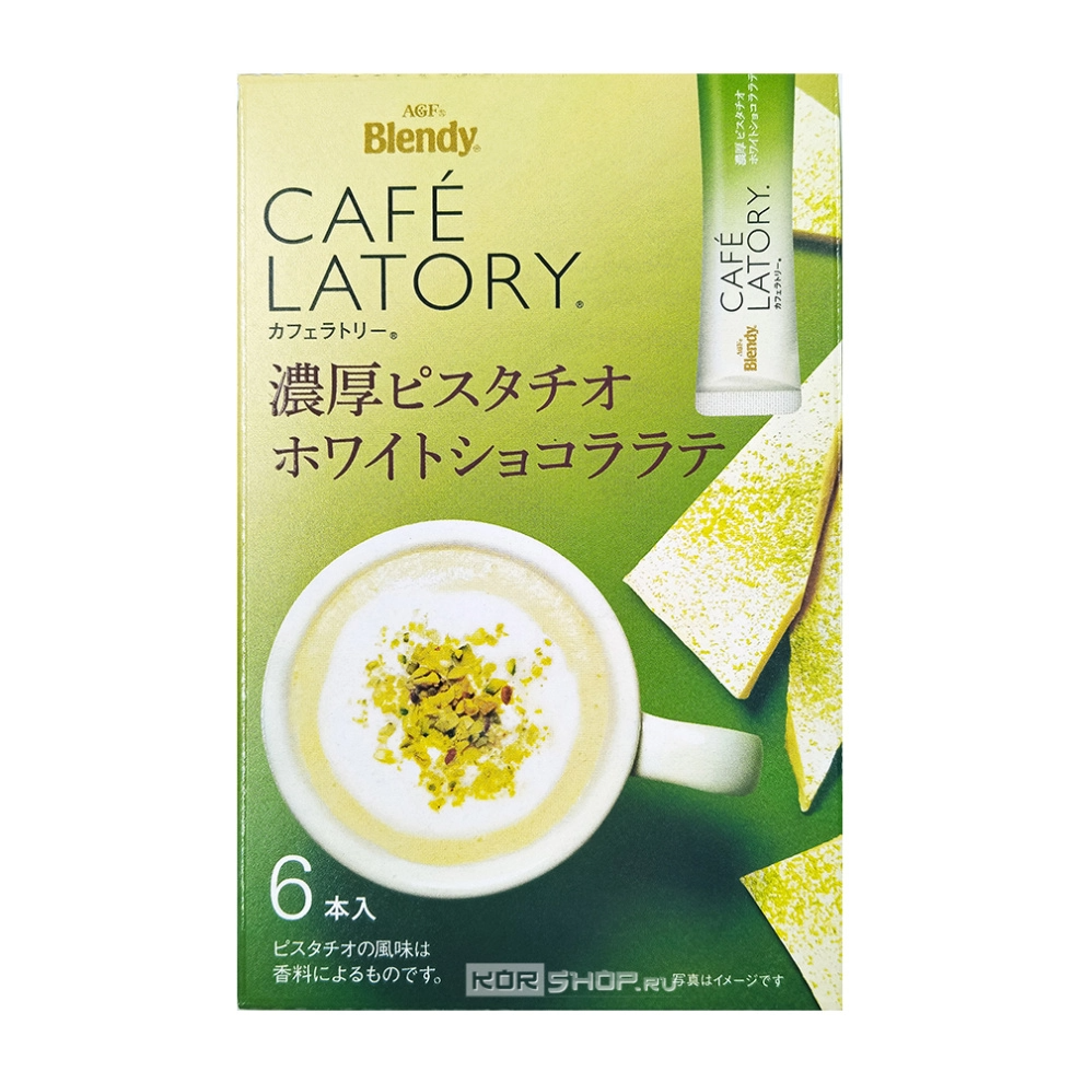 Растворимый напиток Латте с насыщенным фисташковым вкусом и белым шоколадом в стиках Cafe Latory Blendy AGF, Япония, 60 г (10 г х 6 шт.) Акция
