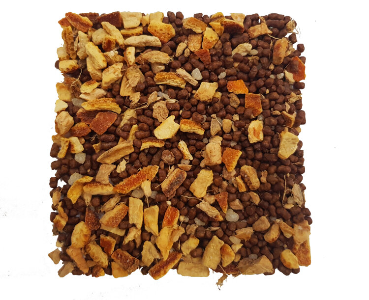 Гречишный чай Ку Цяо производится из светлых зёрен татарской гречихи, которая растет в горных районах Китая. Зерна гречихи после сбора подвергаются прожарке для усиления вкуса и аромата. В состав гречишного чая "Мед и Имбирь" помимо гречишного чая КуЦяо входят цедра апельсина, корень имбиря, гранулы меда, ароматические масла. В традиционной китайской медицине принято считать, что напиток Ку Цяо усиливает энергию Ци и способствует гармоничному течению мыслей. Современные исследования показывают, что этот напиток способен понижать сахар в крови и поддерживать иммунитет. Гречишный чай "Мед и Имбирь" – это настоящий кладезь полезных ингредиентов, которые помогут укрепить иммунитет, улучшить настроение и наполнить энергией. В сухом виде – россыпь светлых твёрдых зёрнышек гречихи, апельсиновой цедры, кусочков сушеного корня имбиря и гранул натурального меда. Аромат сухой заварки наполнен медово-имбирными нотами и цитрусовыми оттенками. Подробнее о гречишном чае и его полезных свойствах. Вкус При заваривании получается настой ярко-желтого цвета, в аромате которого слышатся имбирное печенье и мед. Вкус у напитка сладковатый, но чуть пряный, с характерной остротой имбирного корня, с нотами цитрусовой цедры и медового печенья. В послевкусии остается имбирь и мед. Как заваривать Заваривать при температуре 95-98°C, 2 чайных ложки на чайник 450 мл, в течение 1-3 мин. Для проливного метода — 8 г заварки на гайвань или колбу типода, в течение 5-15 сек.
