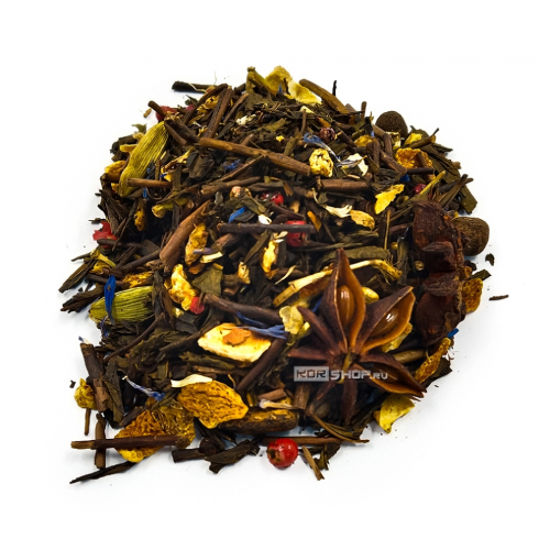 Состав: японский чай, кардамон, перец душистый, цедра апельсина, корица, бадьян, василек, перец розовый, имбирь, ароматические масла.