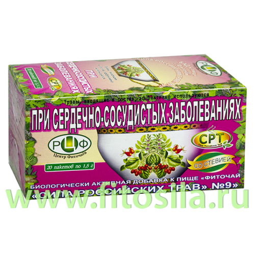Фиточай "Сила российских трав" № 9: сердечно-сосудистый, БАД, 20 ф/п х 1,5 г