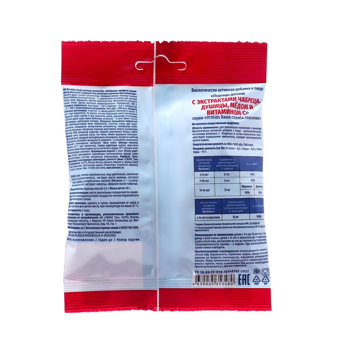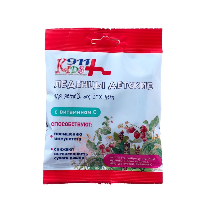 Леденцы 911 детские чабрец, душица, мед, витамин С, 50 г