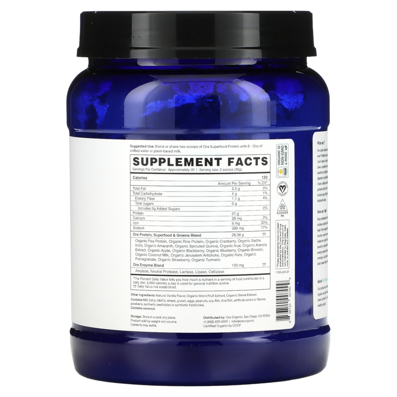 Органический гороховый протеин, органический рисовый протеин, органическая клюква, органический сача инчи, органический амарант, органическая киноа из проростков, органический асаи, органический экстракт ацеролы, органическое яблоко, органическая ежевика, органическая голубика, органическая брокколи, органическое кокосовое молоко, органический топинамбур, органический Кудрявая капуста, органический гранат, органическая клубника, органическая куркума 28,36 г ††