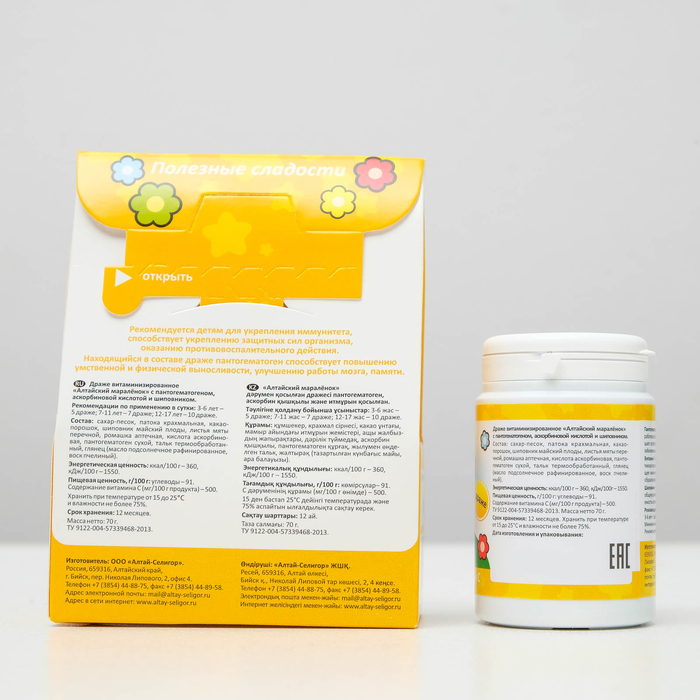 Драже для детей Altay Seligor «Алтайский маралёнок» с пантогематогеном, витамином С и шиповником, 70 г