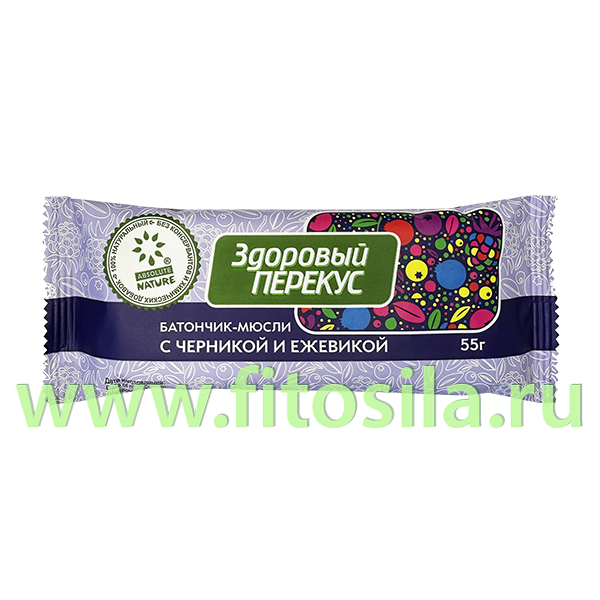 Батончики-мюсли «Здоровый перекус» с товарным знаком «Absolute Nature» с черникой и ежевикой.