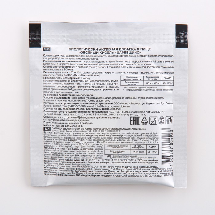 Овсяный кисель «Царевщино» – натуральный напиток на основе овса. Не содержит сахара, не требует варки.