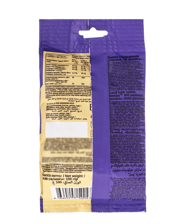 Печенье глазированное BOMBBAR, сливочное, 100 г