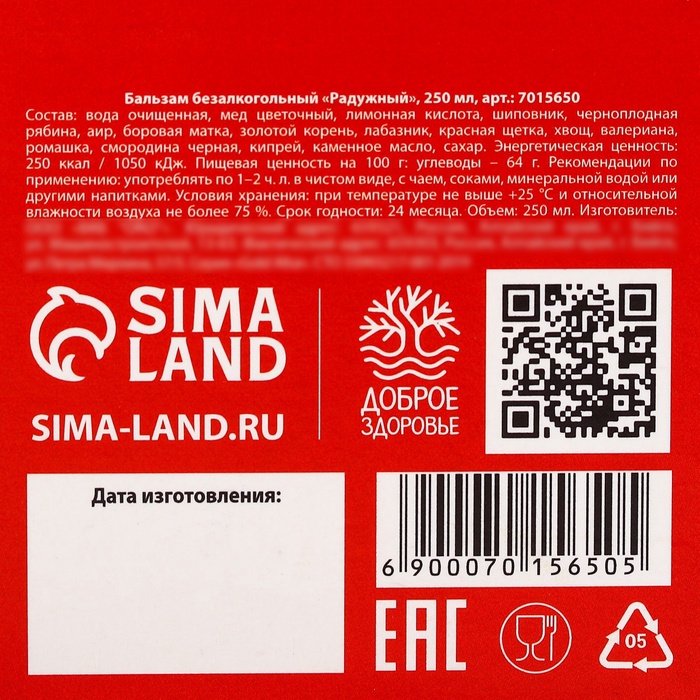 Состав: вода очищенная, мед цветочный, лимонная кислота, шиповник, черноплодная рябина, аир, боровая матка, золотой корень, лабазник, красная щетка, хвощ, валерьяна, ромашка, смородина черная, кипрей, каменное масло, сахар.
