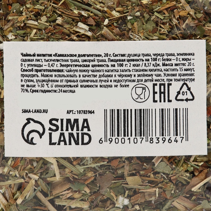 Чай травяной, чайный напиток «Кавказское долголетие», 20 г