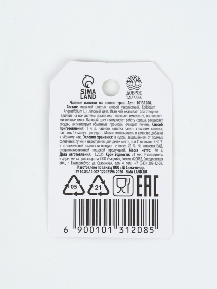 Состав: иван-чай (листья: кипрей узколистный, Epilobium Angustifolium L.), липовый цвет.