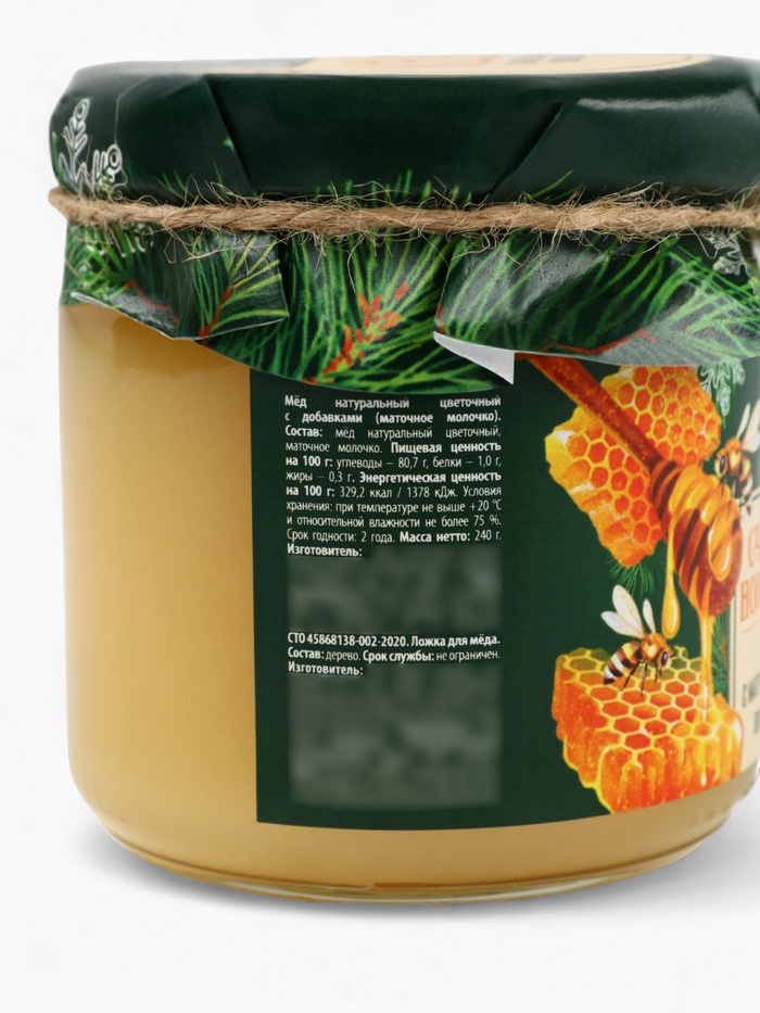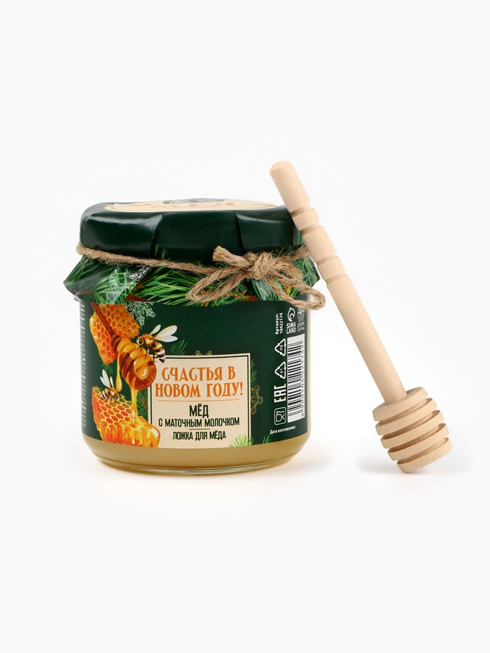 Мёд с маточным молочком «Счастья в Новом году», мёд 240 г, ложка