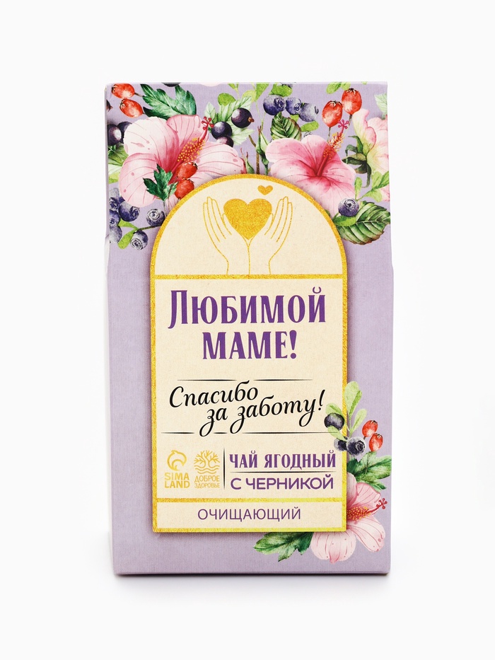 Ягодно-травяной чай «Любимой маме»: черника, плоды боярышника, гибискус, зелёное яблоко, арония черноплодная, 50 г