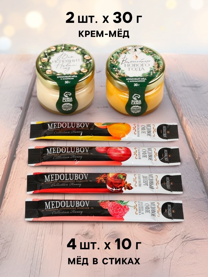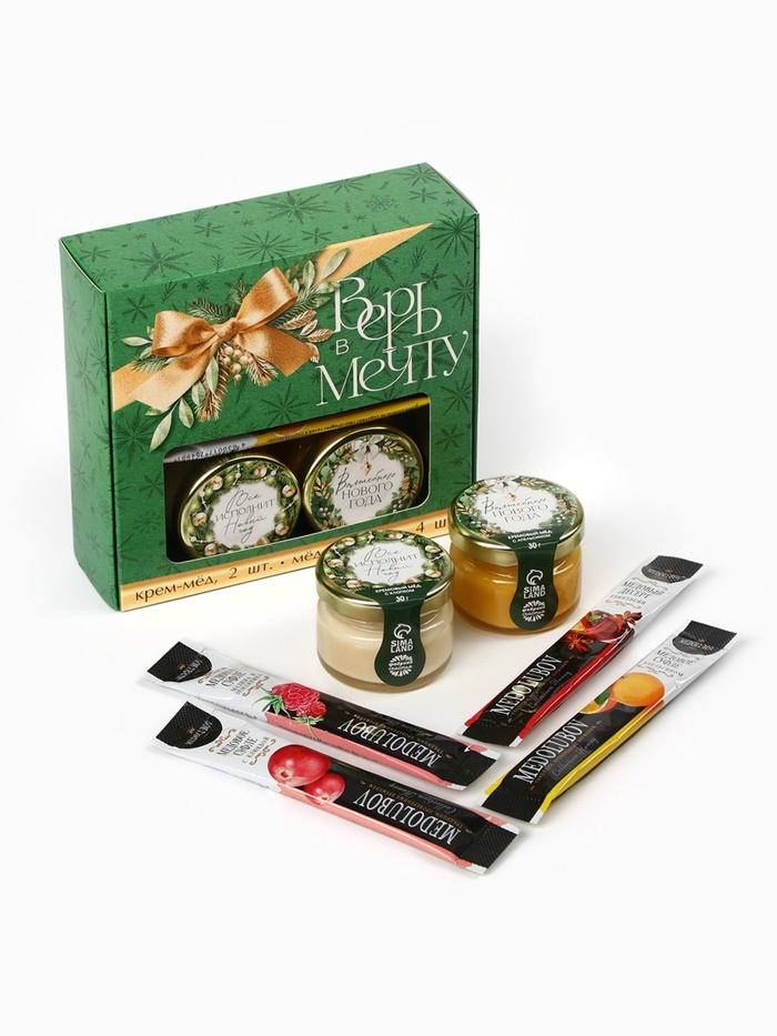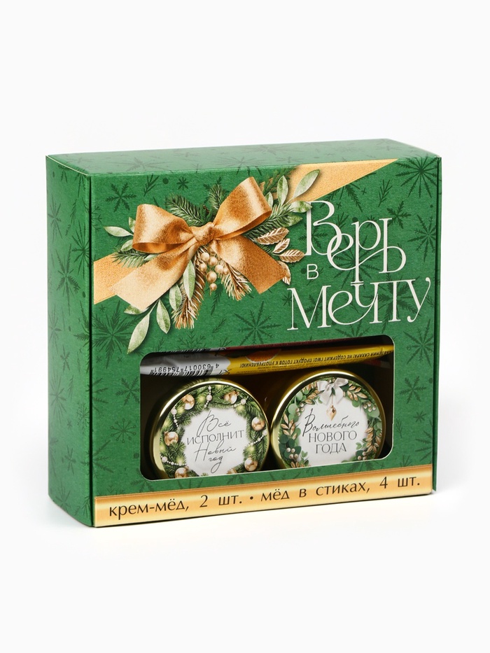 Подарочный набор новогодний «Верь в мечту»: крем-мёд 2 шт., мёд в стиках 4 шт.