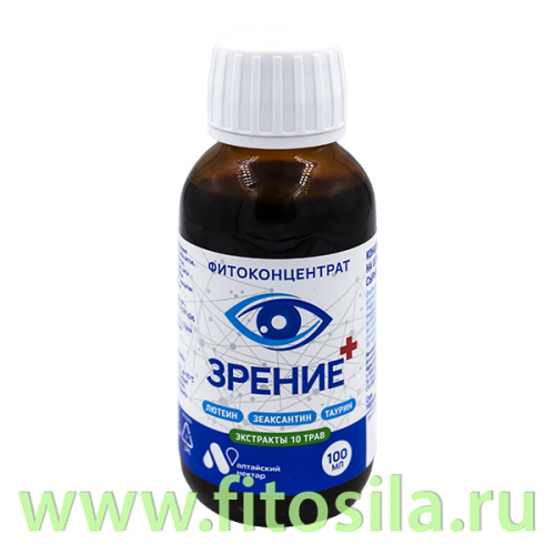 ЗРЕНИЕ – фитоконцентрат для улучшения функционального состояния глаз и поддержания остроты зрения. Содержит комплексный экстракт из 10 лекарственных растений, а также лютеин, зеаксантин и таурин — биологически активные вещества, необходимые для защиты глаз и предотвращения негативных структурных изменений в их строении.