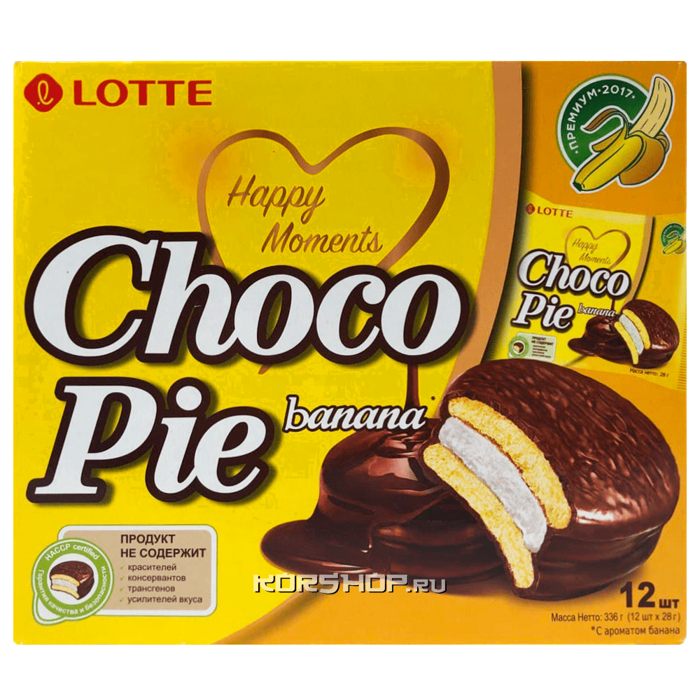 Банановые пирожные ChocoPie от торговой марки Lotte отличаются бесподобным вкусом, в котором сладость тропического фрукта смешивается с глазурью из молочного шоколада и нежным сливочным суфле. Благодаря индивидуальной упаковке, предотвращающей высыхание, этот чудесный десерт всегда можно взять с собой, чтобы насладиться им за обедом.
