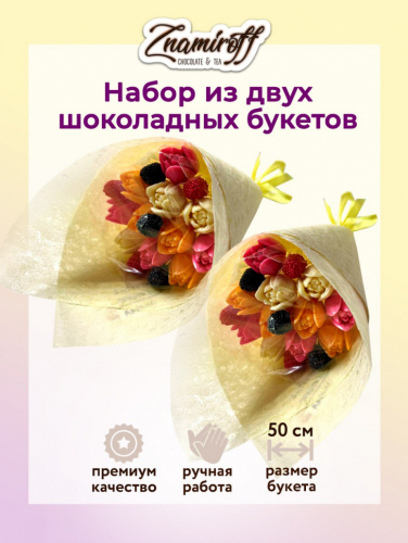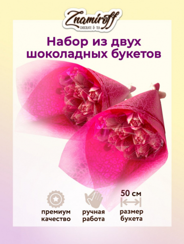 Букеты из фигурного шоколада и мармелада "Тюльпаны розовые"(коробка два букета по 350г по 15 тюльпанов)
