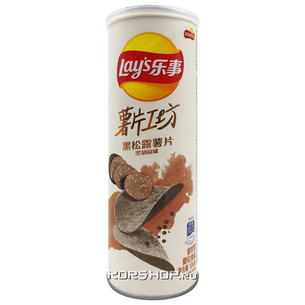 Чипсы с черным трюфелем от торговой марки Lay's – это оригинальная азиатская закуска с ноткой изысканности. Они будут идеально сочетаться с вашими любимыми благородными напитками и станут источником замечательного настроения. Продукт изготавливается из ингредиентов наилучшего качества.