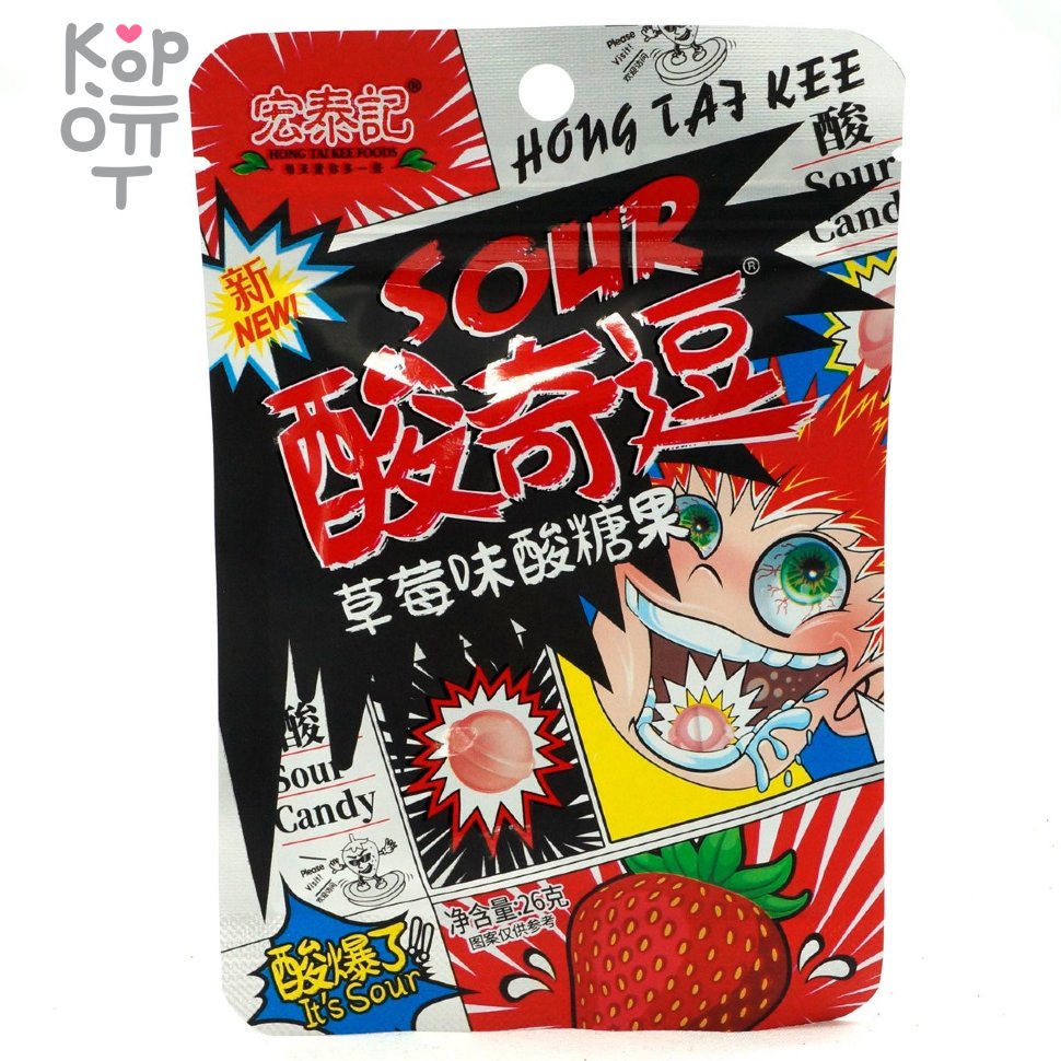 Кислые леденцы Hong Tai Kee со вкусом клубники 26гр