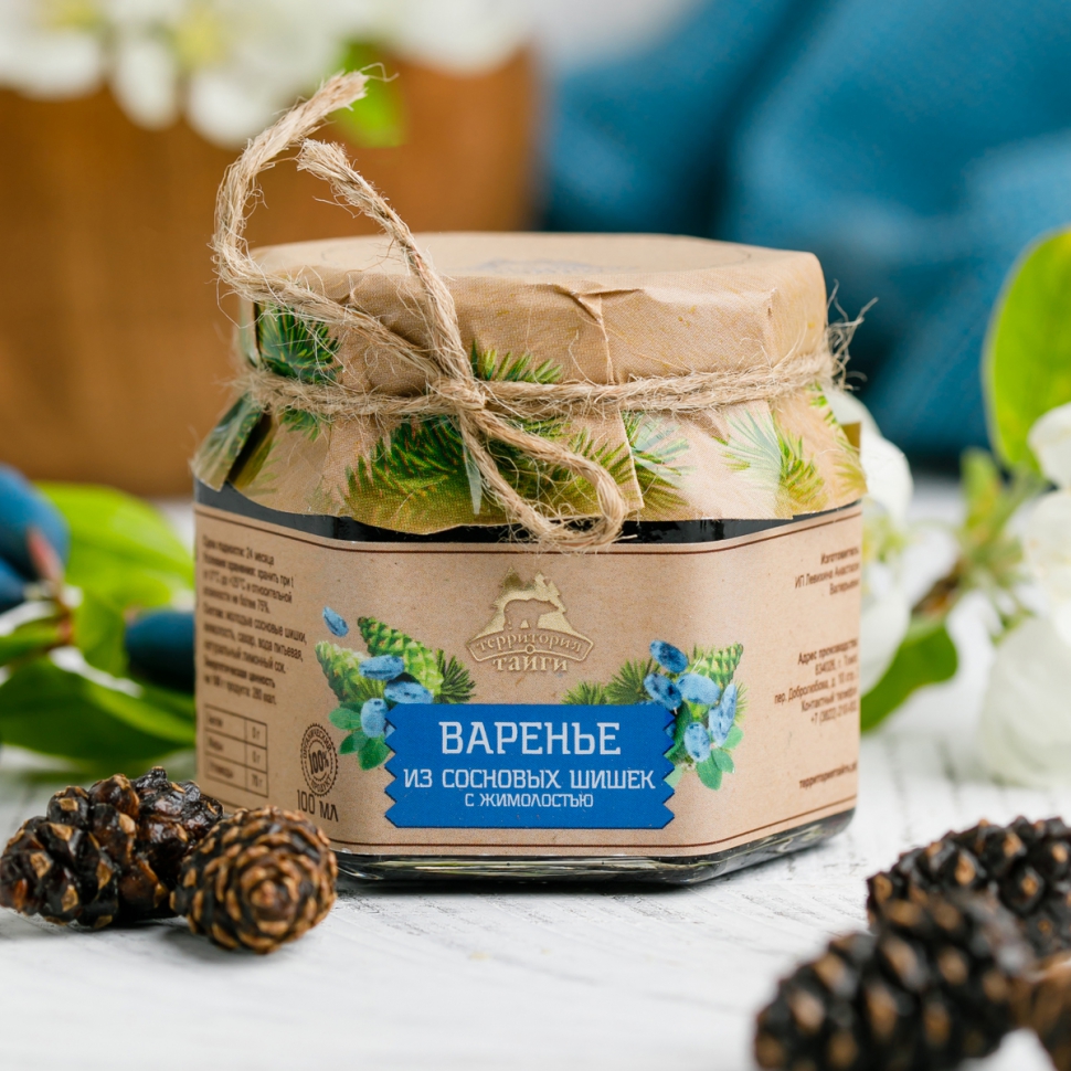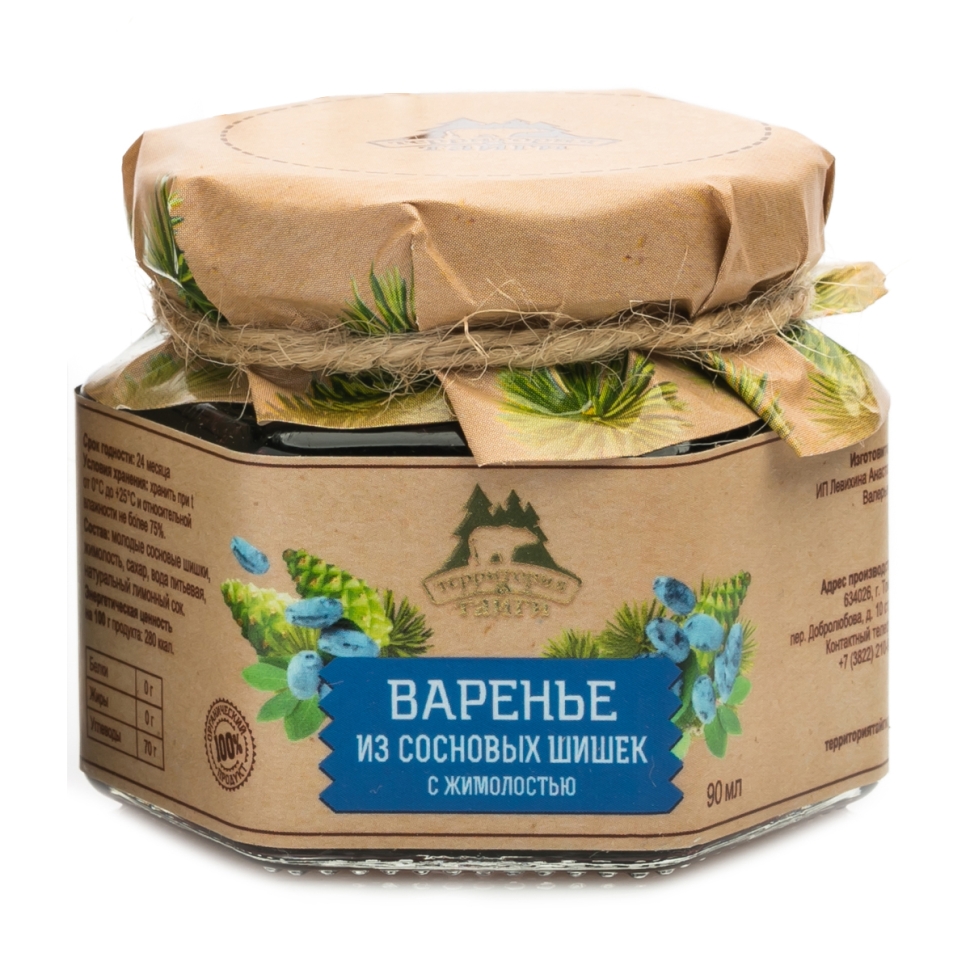 Артикул: 10004; Кол-во в месте: 12 шт.; Вес: 0.28 кг; Cрок годности: 24 месяца; Состав: Молодые сосновые шишки, жимолость, сахар, вода питьевая, лимонный сок.; Условия хранения: Хранить при температуре от 0 до 25 градусов и относительной влажности воздуха не более 75%.; Пищевая и энергетическая ценность на 100 г: 280 ккал, белки 0 г, жиры 0 г, углеводы 70 г.
