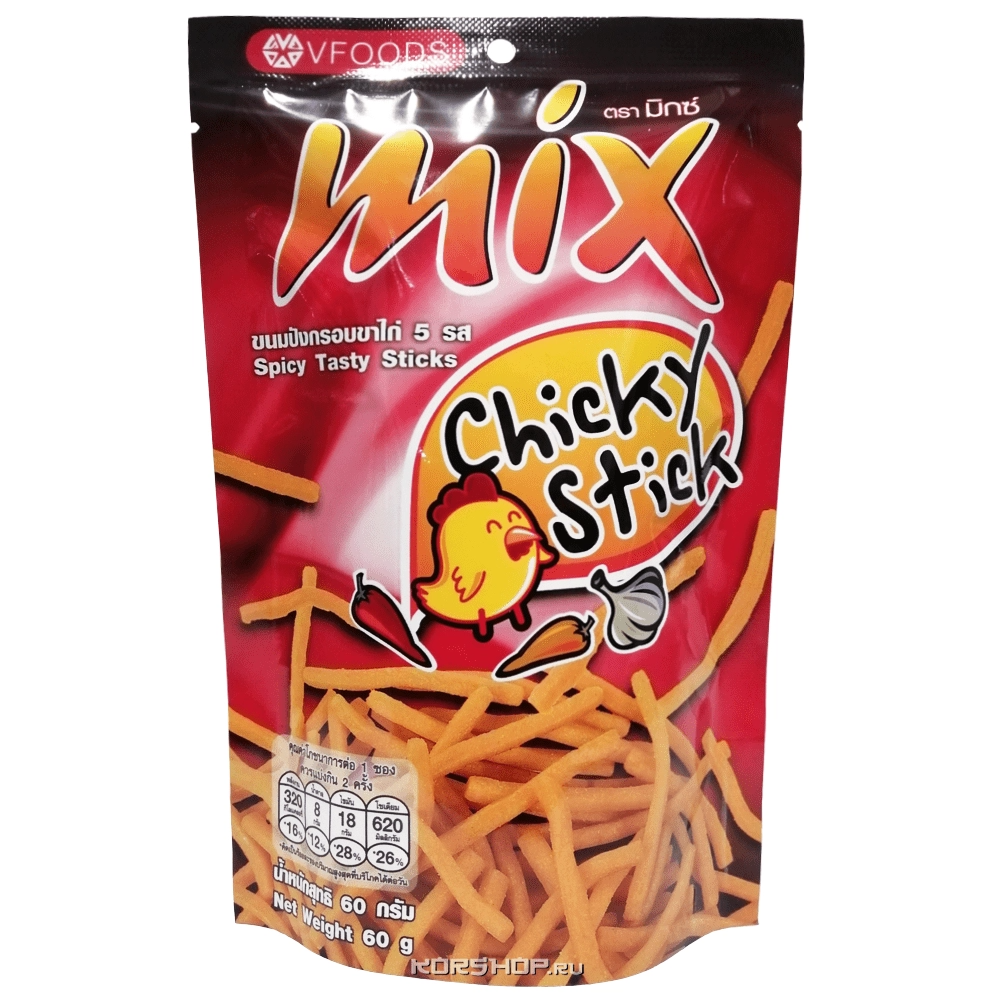 Хрустящие палочки Пикантные со вкусом острой курицы с чесноком Mix VFoods, Таиланд, 60 г