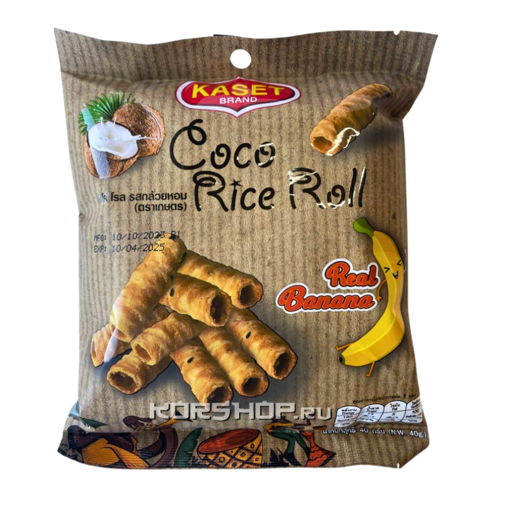Кокосовые роллы из рисовой муки со вкусом Банана Kaset, Таиланд, 40 г Акция