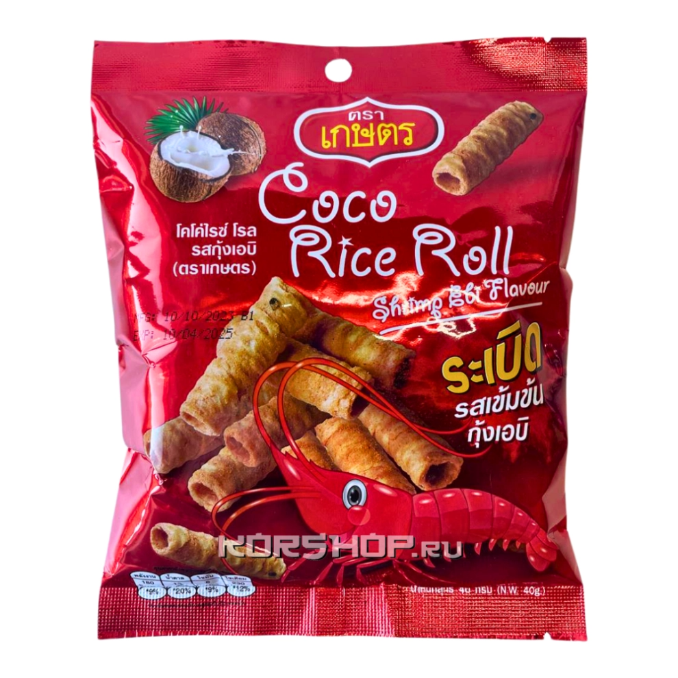 Роллы от тайской компании Kaset изготовлены из высококачественного риса жасмин и кокосового молока. Сочный и яркий вкус креветок роллам придает специальный натуральный ароматизатор. В составе этого ароматизатора — порошок из моллюсков, перец чили, чеснок, кориандр и белый перец.