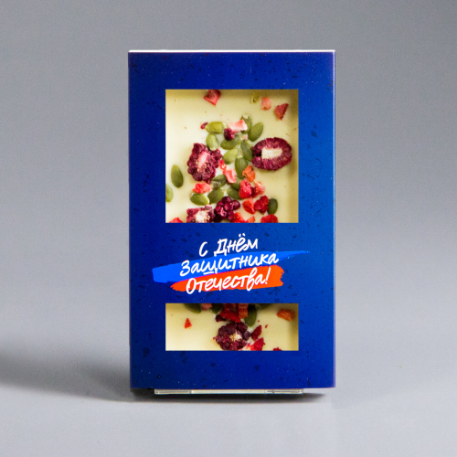 Белый шоколад с клубникой, ежевикой и семечками тыквы, синяя коробочка #9