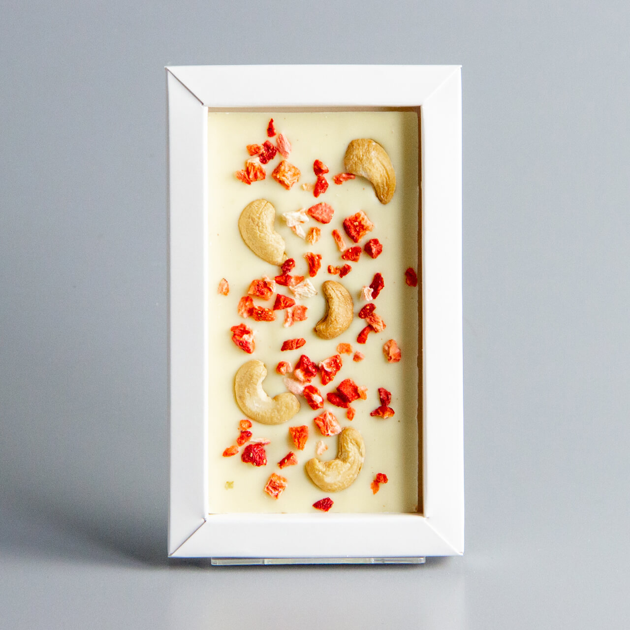 Белый шоколад с клубникой и жаренным кешью, синяя коробочка #4