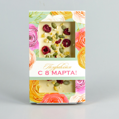 Белый шоколад с манго, вишней и семечками тыквы, коробочка с 8 марта #5