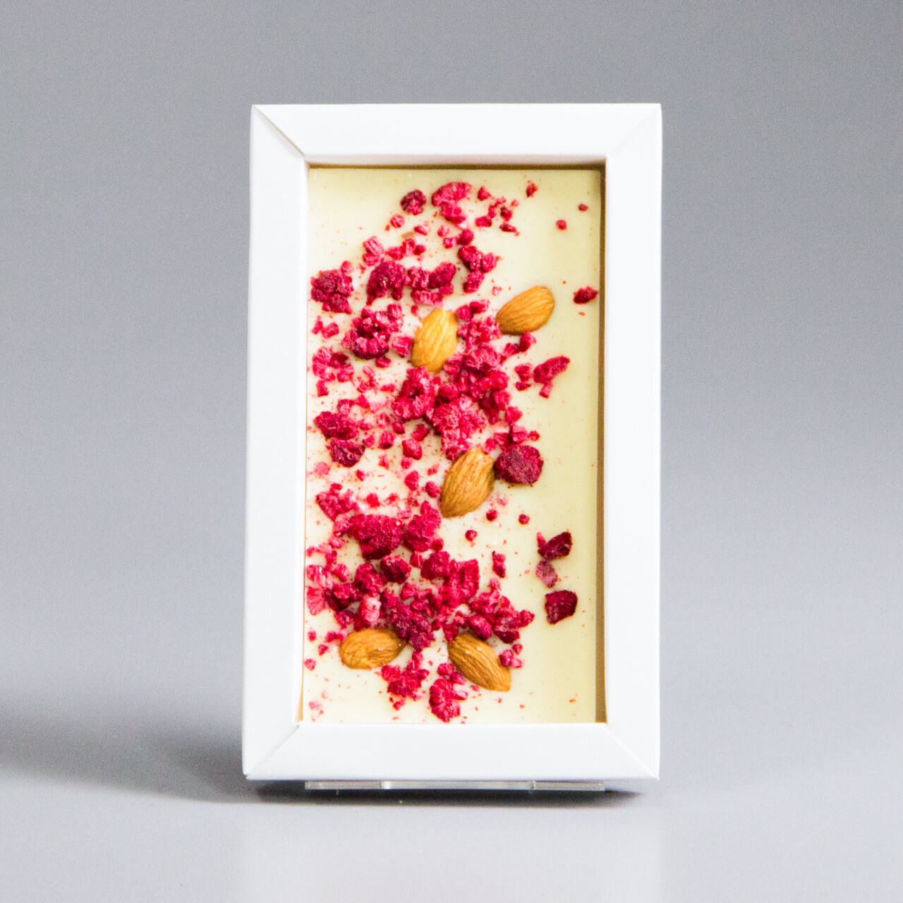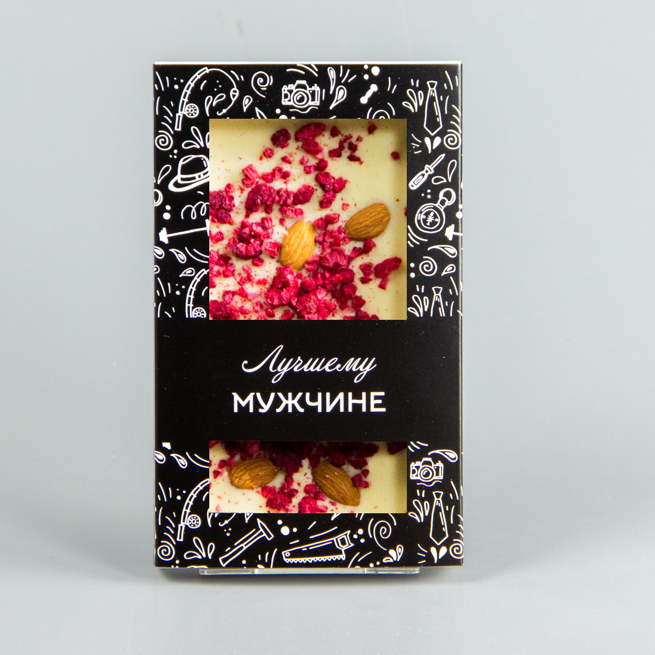 Белый шоколад с сублиматами малиной и миндалем, коробочка мужчине #7