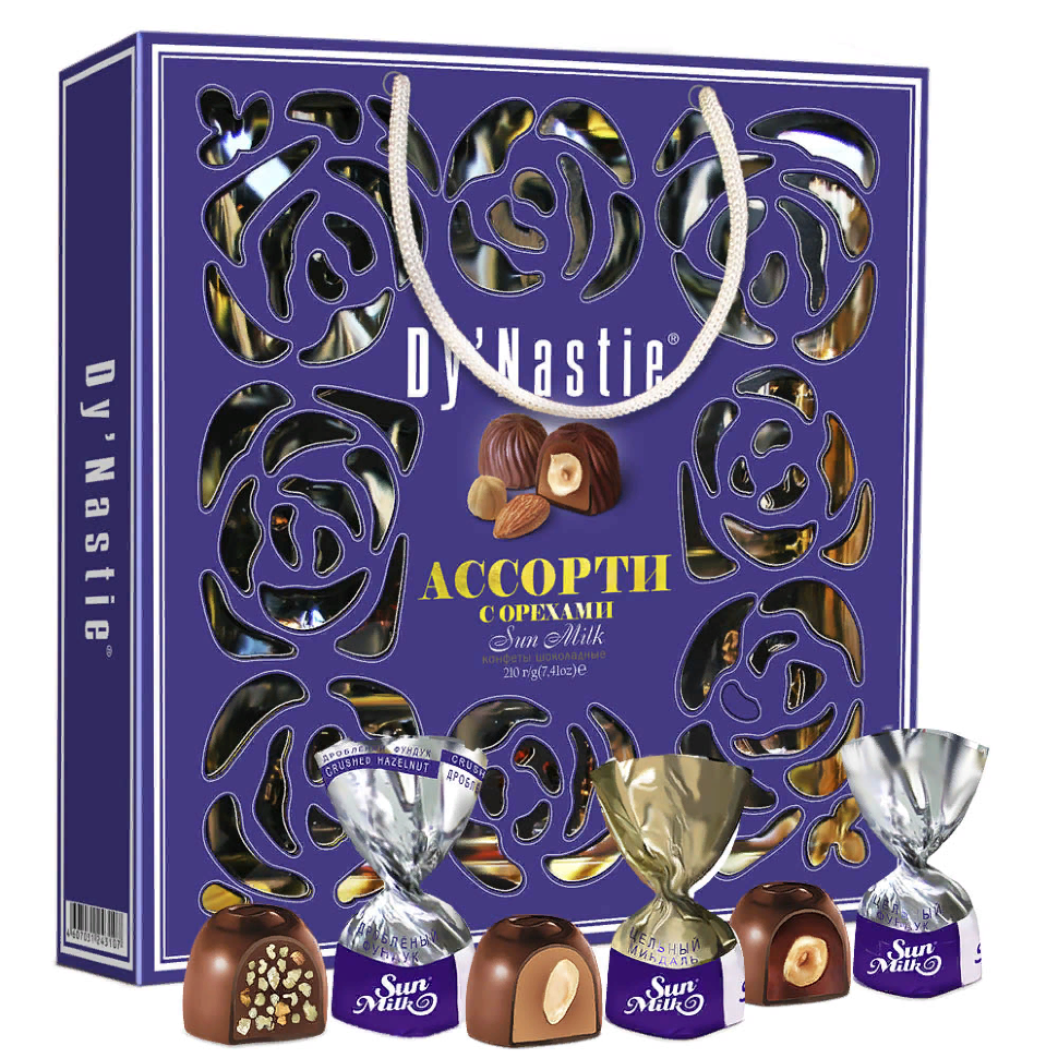 Династия Сумка Конфеты "Ассорти с орехами", 210г
