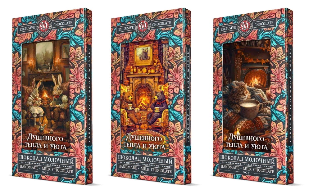 " Душевного тепла и уюта ! " молочный шоколад , набор ассорти из 3 дизайнов.