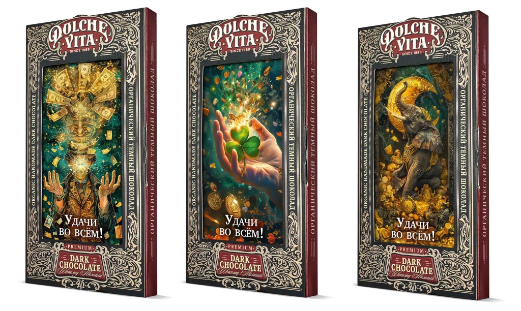 "Удачи во всем !" темный шоколад, набор из 3 дизайнов