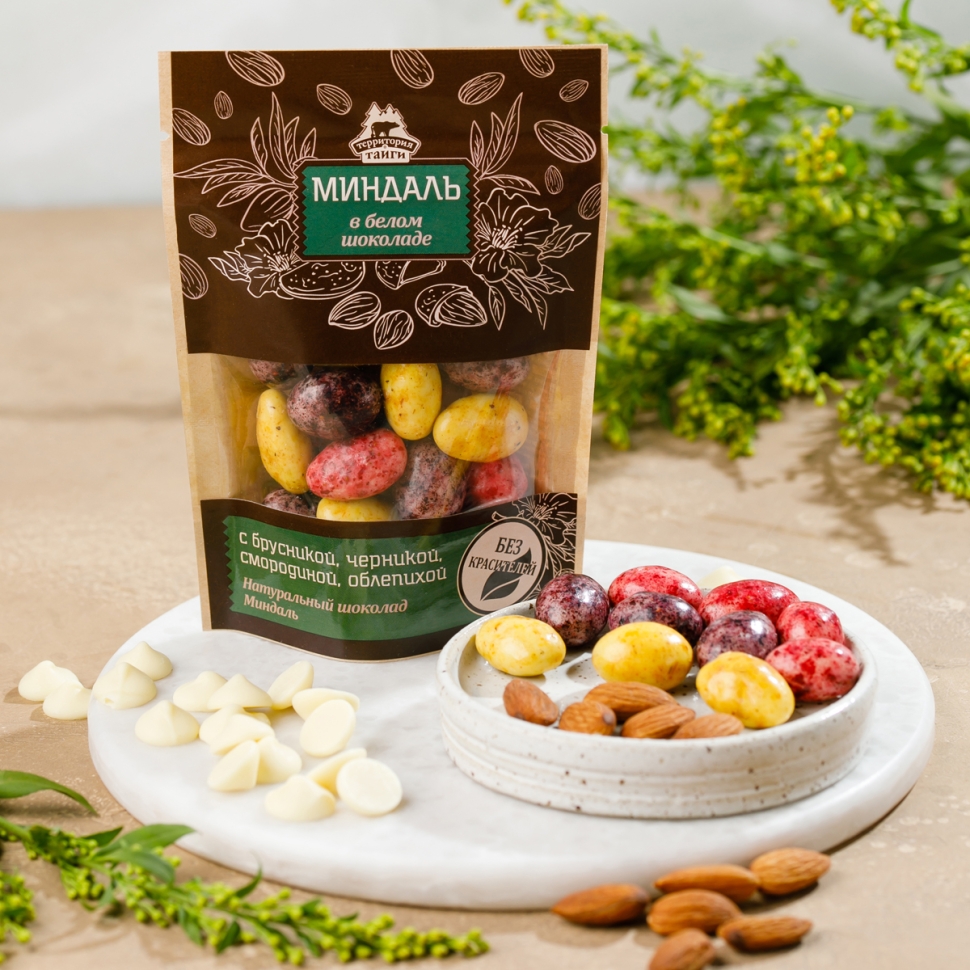 Драже Миндаль в белом шоколаде с таежными ягодами 80 грамм