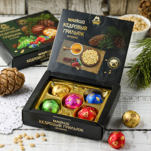 Состав: финики, темный шоколад (какао тертое, подсластитель мальтитол, масло какао, эмульгатор соевый лецитин, натуральный ароматизатор "Ваниль"), клюква сушеная, ядро кедрового ореха.