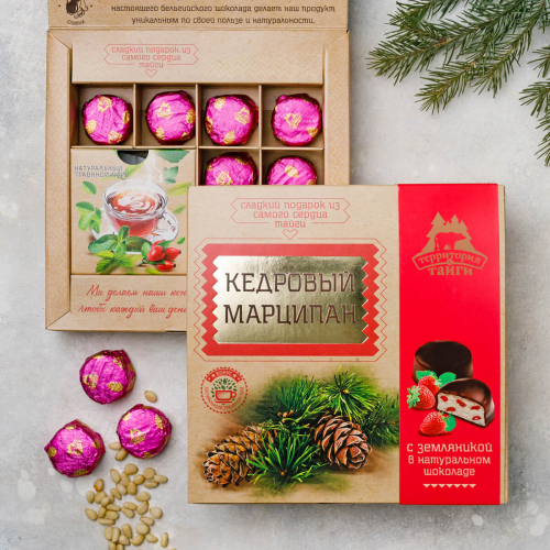 Конфеты «Кедровый марципан ассорти» (классический, с земляникой, черникой, малиной, клюквой), 75 г