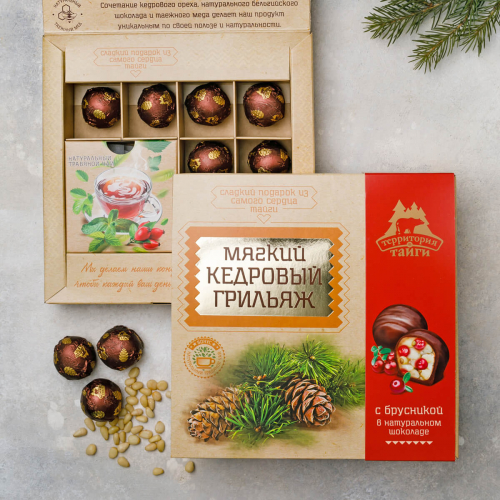 Конфеты «Мягкий кедровый грильяж ассорти» (классический, с клюквой, сосновой шишкой), 120 г